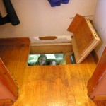 This secret trap door shown on Reddit folds open to reveal stairs to a playroom area in the basement.