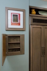 This clever hidden storage setup we found on Pinterest uses a picture frame that opens up to reveal a secret compartment inside the wall.
