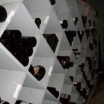 This custom swing-in bookshelf door opens up to reveal a secret wine cellar behind.
