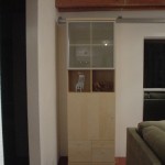 IKEA Hacker featured this project using a Bonde bookcase. Nicole added 4 castors to the bottom and a sliding rail at top, along with reinforcing the cabinet, to create a sliding bookcase door for a half bath. This isn’t completely secret since the rail is fully exposed at the top, but it’s still an easy way to get storage space, some novelty, and an inconspicuous yet functional door.