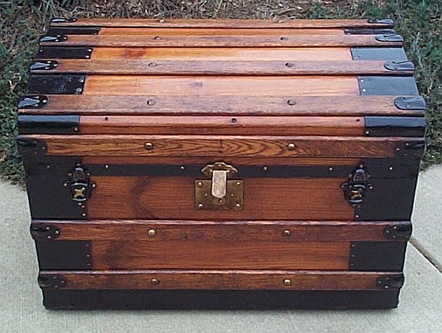 This antique trunk featured on The Pirate’s Lair was constructed in 1877 and includes a secret storage compartment concealed in the lid.