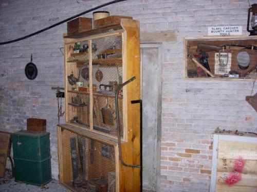 This secret door and passage used for the Underground Railroad was concealed by a hinged tool cabinet. Secret door behind tool cabinet used along the underground railroad