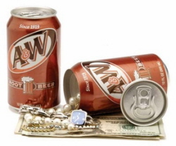 This secret stash cans safe made from a real A & W Root Beer can. The top of the can unscrews to reveal a hidden compartment inside, great for stashing money, keys, and other goodies inside, especially when traveling. Be careful about hiding these in the fridge...