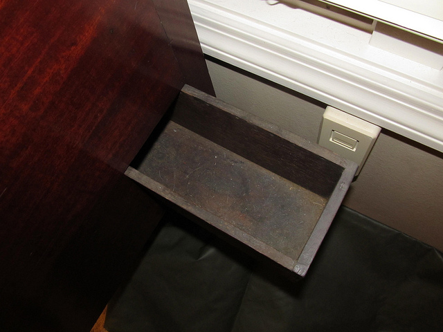 This vintage Victorian gentleman’s chest featured by the Florida Steampunker includes a secret drawer compartment on the lower side for hiding valuables.
