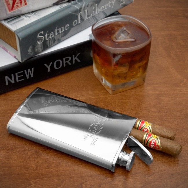 This flask featured on GadgetReview includes a secret cigar compartment that opens on the top.