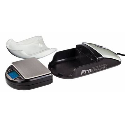 This computer laser mouse includes a secret stash compartment and hidden digital scales, presumably for measuring and storing contraband.