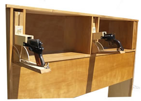 CovertFurniture.com is a newer company that specializes in secret compartments in furniture. This headboard can be made with 2 or 3 pop-out handgun compartments, depending on the bed size, allowing for easy access even when lying in...