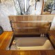 We found this hidden hot tub on AirBNB. The vacation rental is loft style and tight on space. To make the most of what was available, a section of the floor lifts up as a trap door revealing a hidden hot tub beneath.