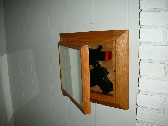 Mike at MD-Const just started putting together these gun cabinets that fit in the wall. They are concealed by a full-length mirrored door that slides to the side. I don’t have dimensions, the cabinet can store pistols, long guns or other...