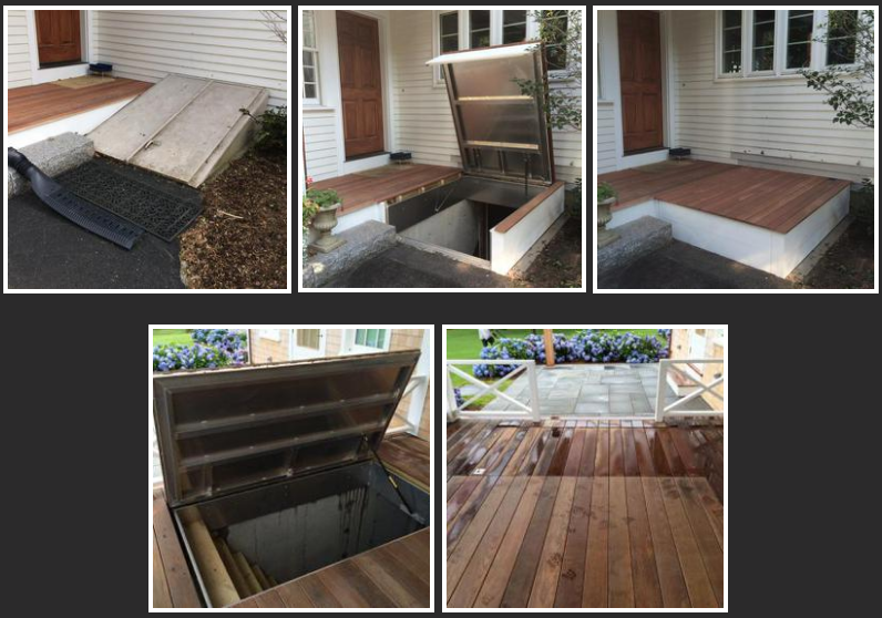 Yesterday we presented a custom deck trap door that allowed access to an external cellar basement door. That set us on a journey to see what other options there were for the same function. We found this company, LuciGold, that makes hatches for this specific purpose....