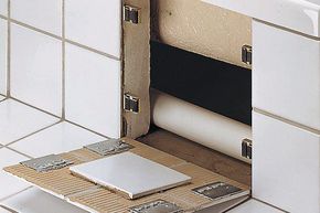 These brackets and magnetic clips from Schluter are designed to hold tiles in place to create hidden access panels to reach electrical and plumbing issues.
