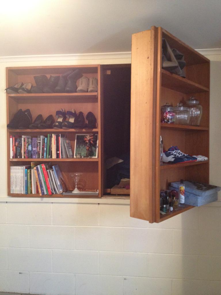 This interior designer incorporated a secret passage into the rooms art. A large framed poster pivots out with a piece of the wall to act as a secret door.