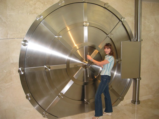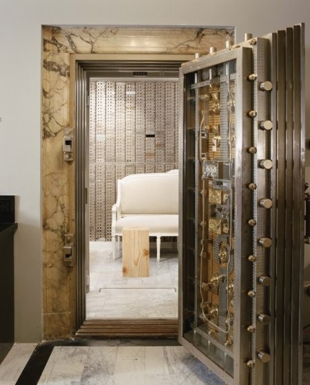 Club Aston at Galpin Aston Martin is a unique concept of exotic car showrooms involving car turntables, all access memberships, and this large stainless vault door.