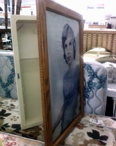 This old medicine cabinet has been reused as a hidden wall compartment. Apartment Therapy recommends finding these at local reuse stores. Set it into the wall, and attache a large picture frame in place of the original door.