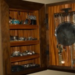 This jewelry box featured on CustomMade.com mounts to a wall and has a side pivoting door to access contents. The interior shelves slide down, however, to reveal a secret jewelry storage compartment behind. This type of storage is nice because a thief is less likely to grab the entire box is it is mounted to the wall.
