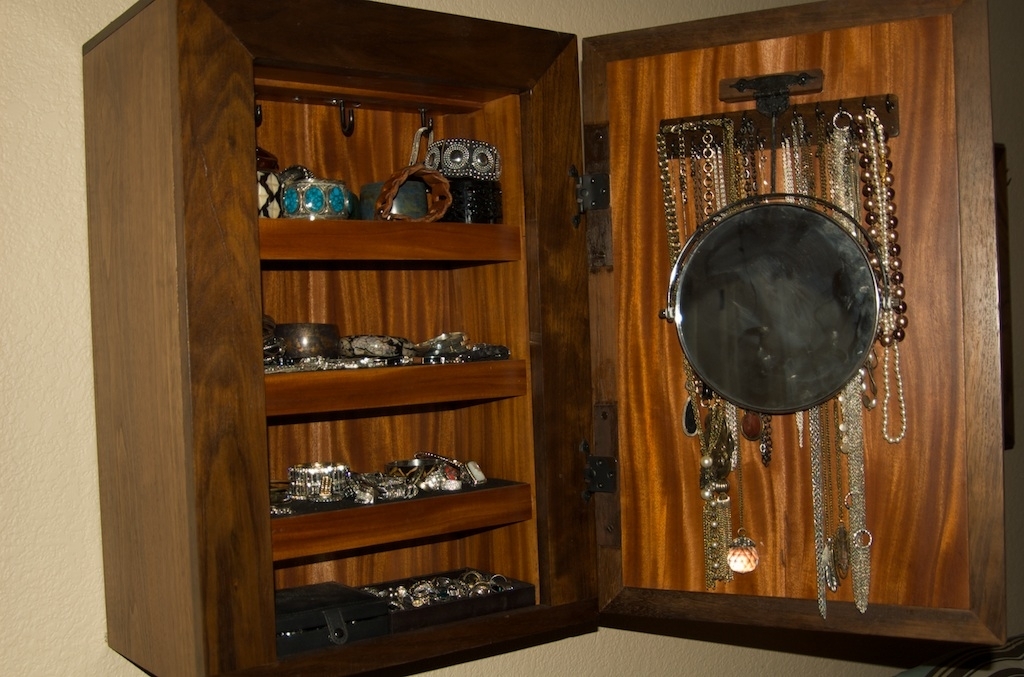 This wall mount jewelry box is made of wood with a secret slide down compartment. – Source: http://www.custommade.com/jewlery-box-wish-secret-compartment/by/intrigue/