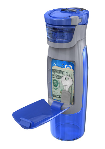 While not completely secret, the storage compartment in this AUTOSEAL® Kangaroo water bottle from Contigo is very useful. It’s big enough to hold cash, keys and cards when you’re traveling light, like at the gym, pool or beach.